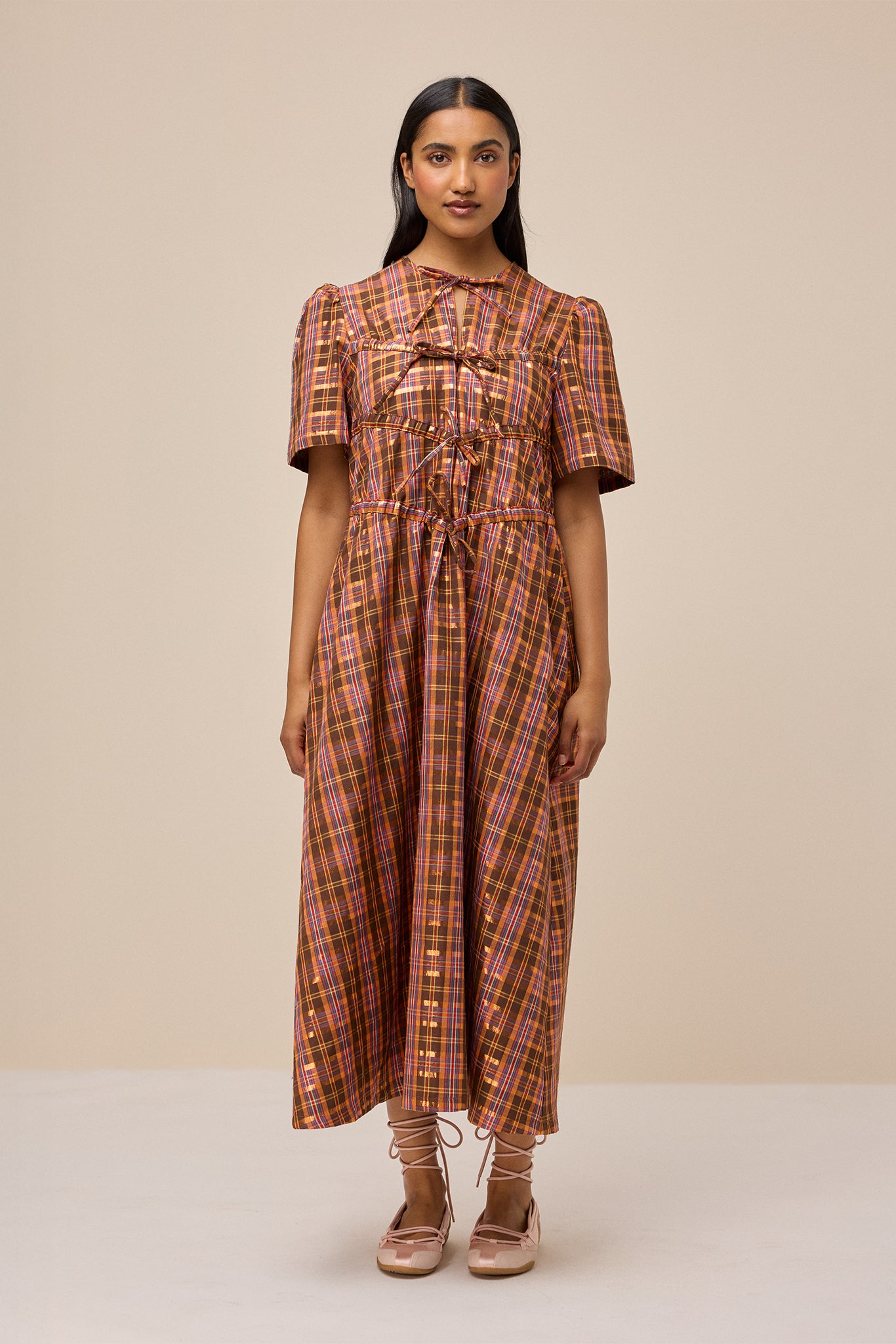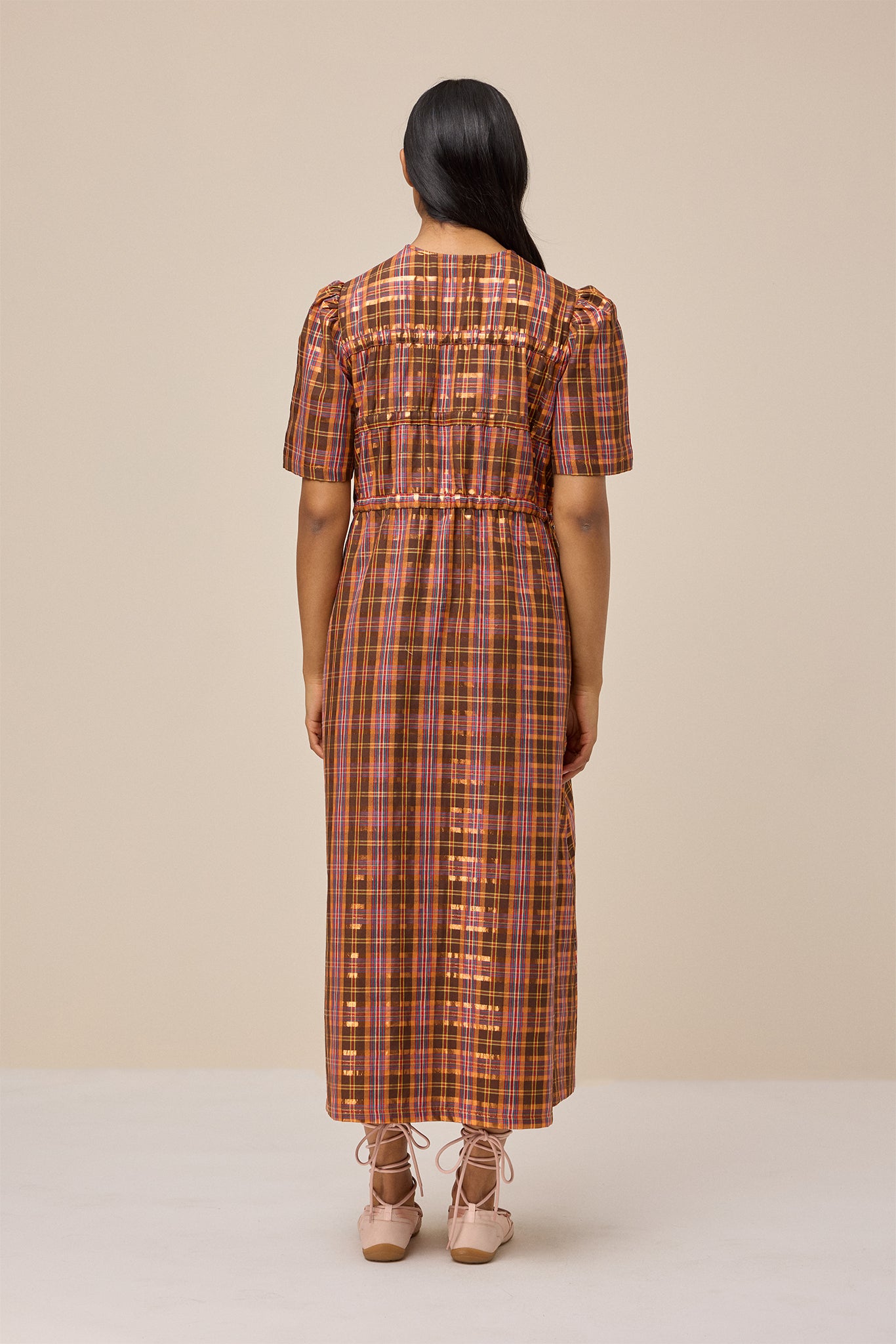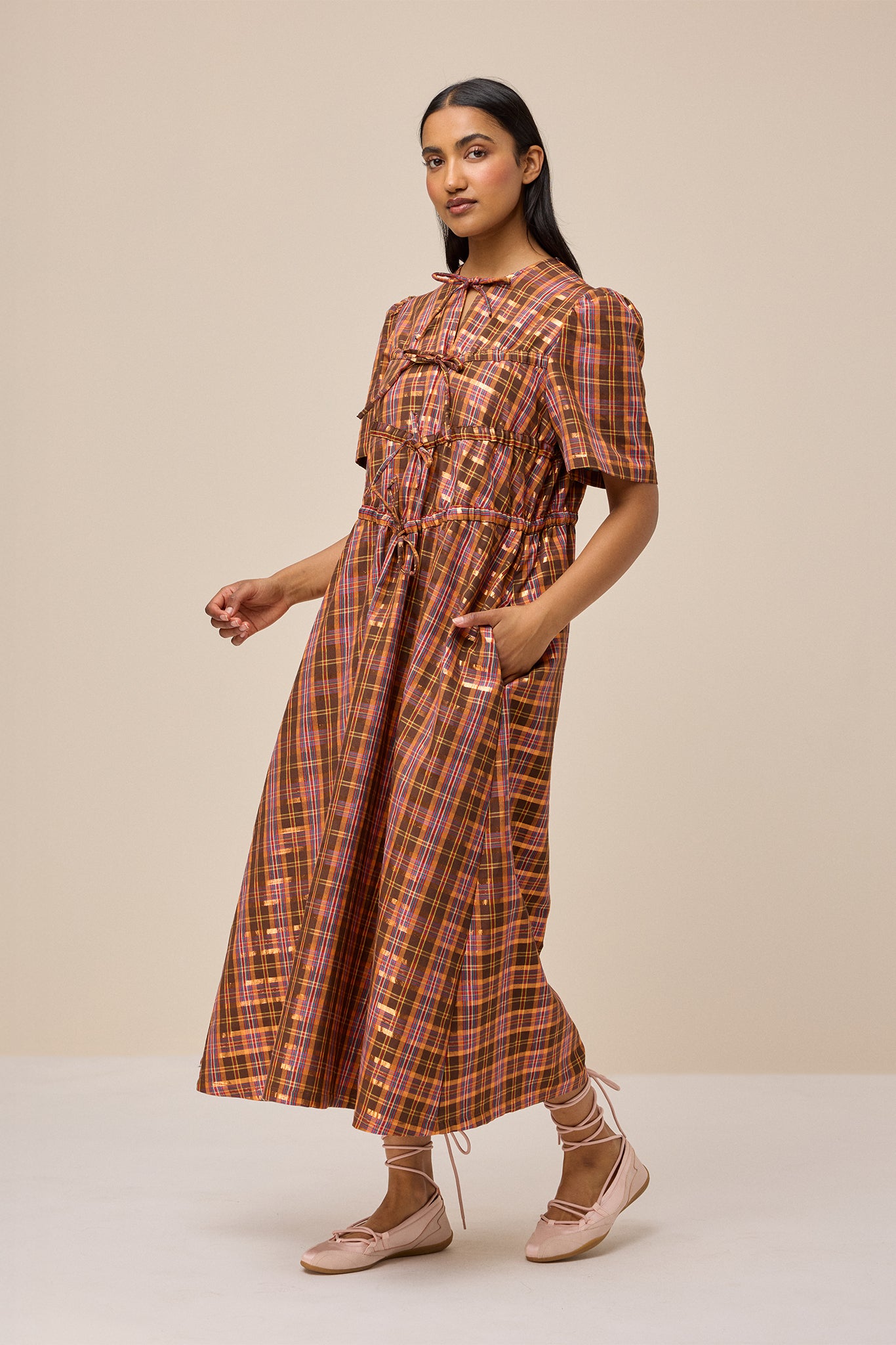 Love this cut and style! This fabric is slightly stiffer than the green plaid, but the metallic thread and warm colours are so beautiful for winter and fall! But also just a perfect year round dress!