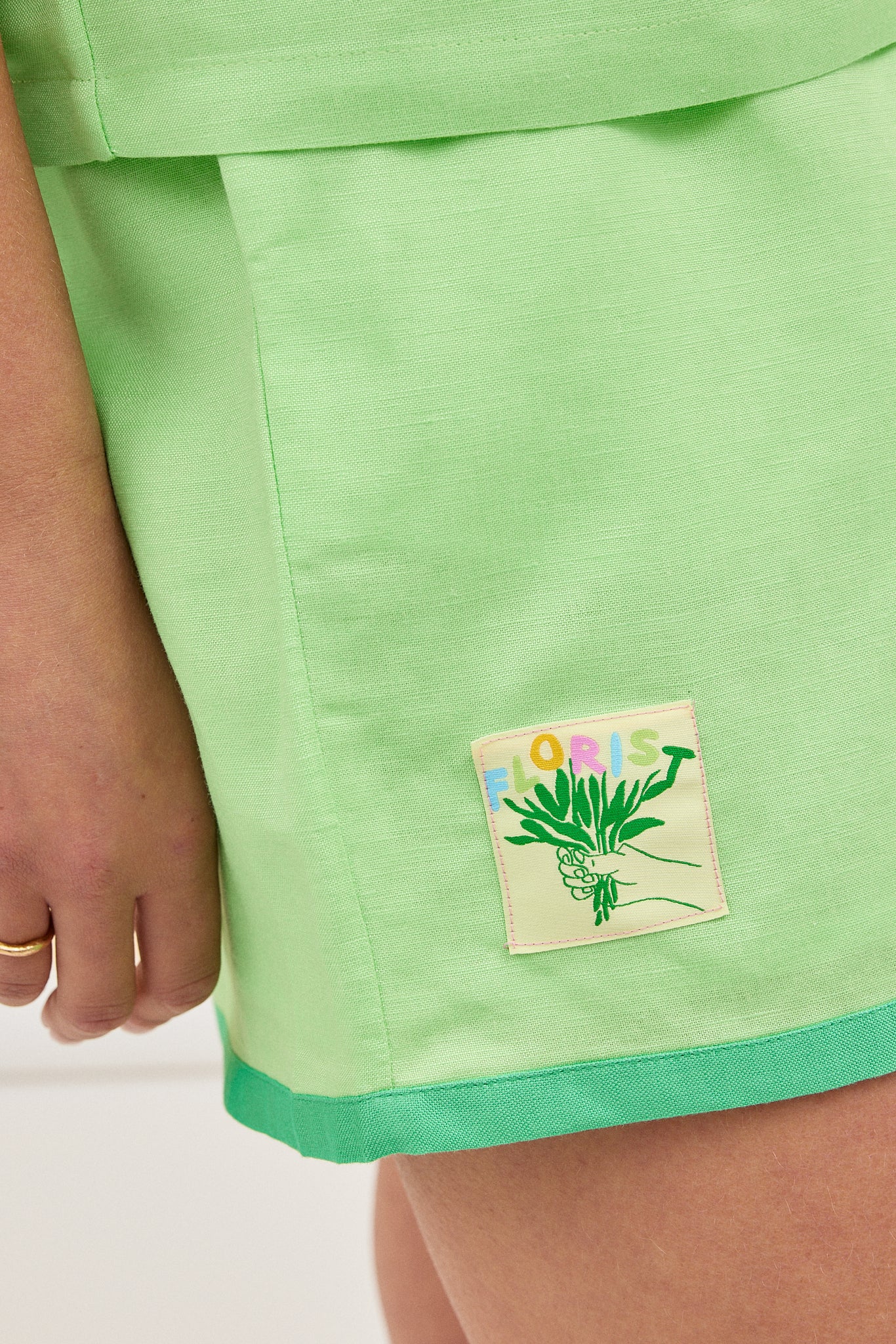 They feature a contrast shade bind across the legs of the shorts and a custom Florist Patch.