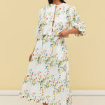 The Garden Gia Skirt is an a-line shaped, gathered, midi skirt.