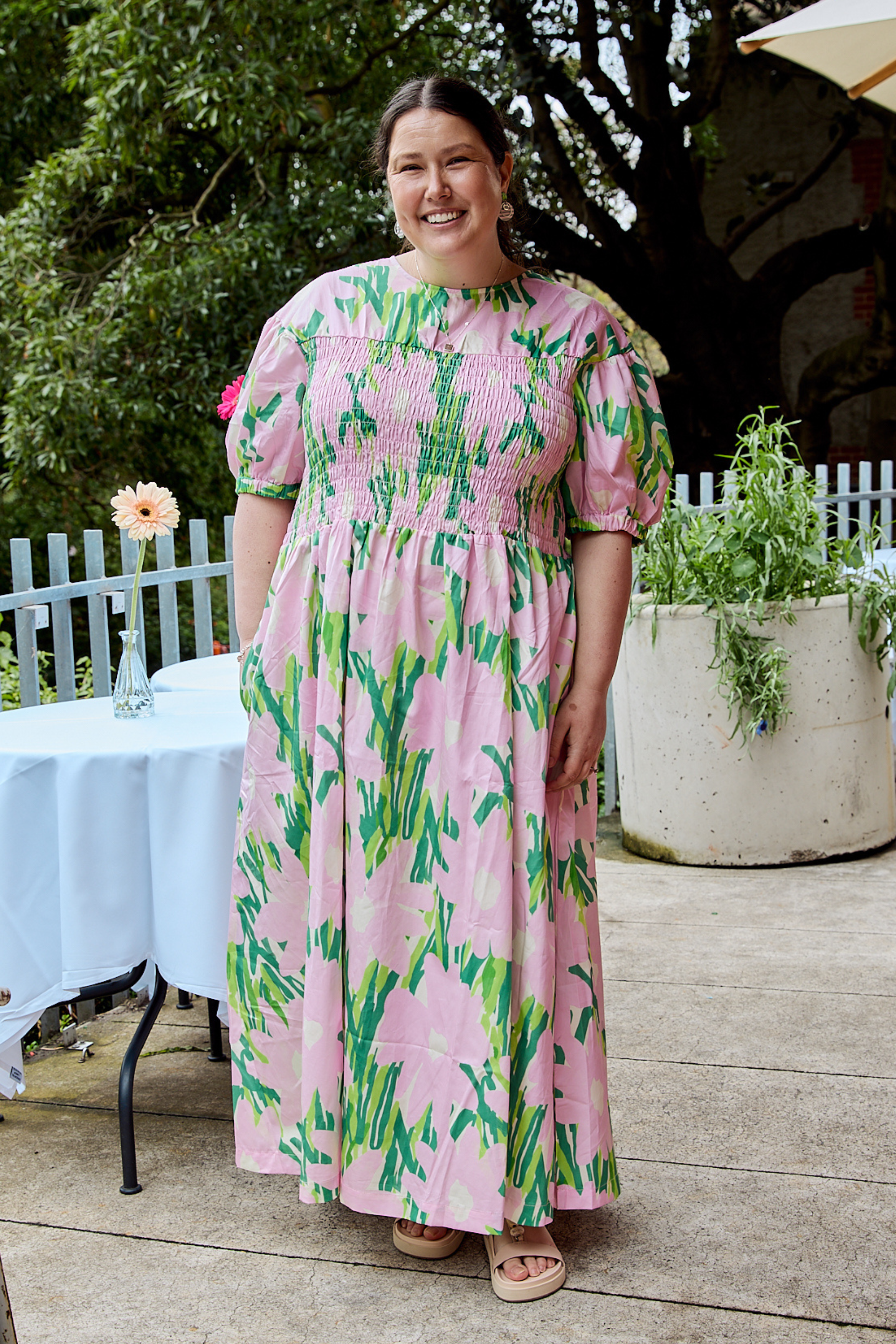 The shirring on the bodice helps with ease of fit through the bust.