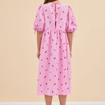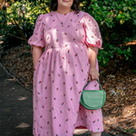 The Rosso Dress is the newest smock in the VH collection. It is custom embroidered in our Roses design on a pink cotton seersucker.