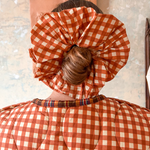 This scrunchie is made out of 100% Cotton printed in our Haybell Gingham Print.