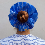 This scrunchie is made out of 100% Cotton printed in our Toile De Jouy Print.