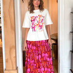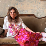 The Story Tee is our short sleeve, graphic tee shape. It is made out of a thick, Organic Cotton Jersey and is digitally printed with our Bows design.