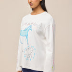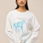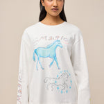 The Story Tee is our long sleeve, graphic tee shape. It is made out of a thick, Organic Cotton Jersey and is digitally printed with our HORSE GIRL design.