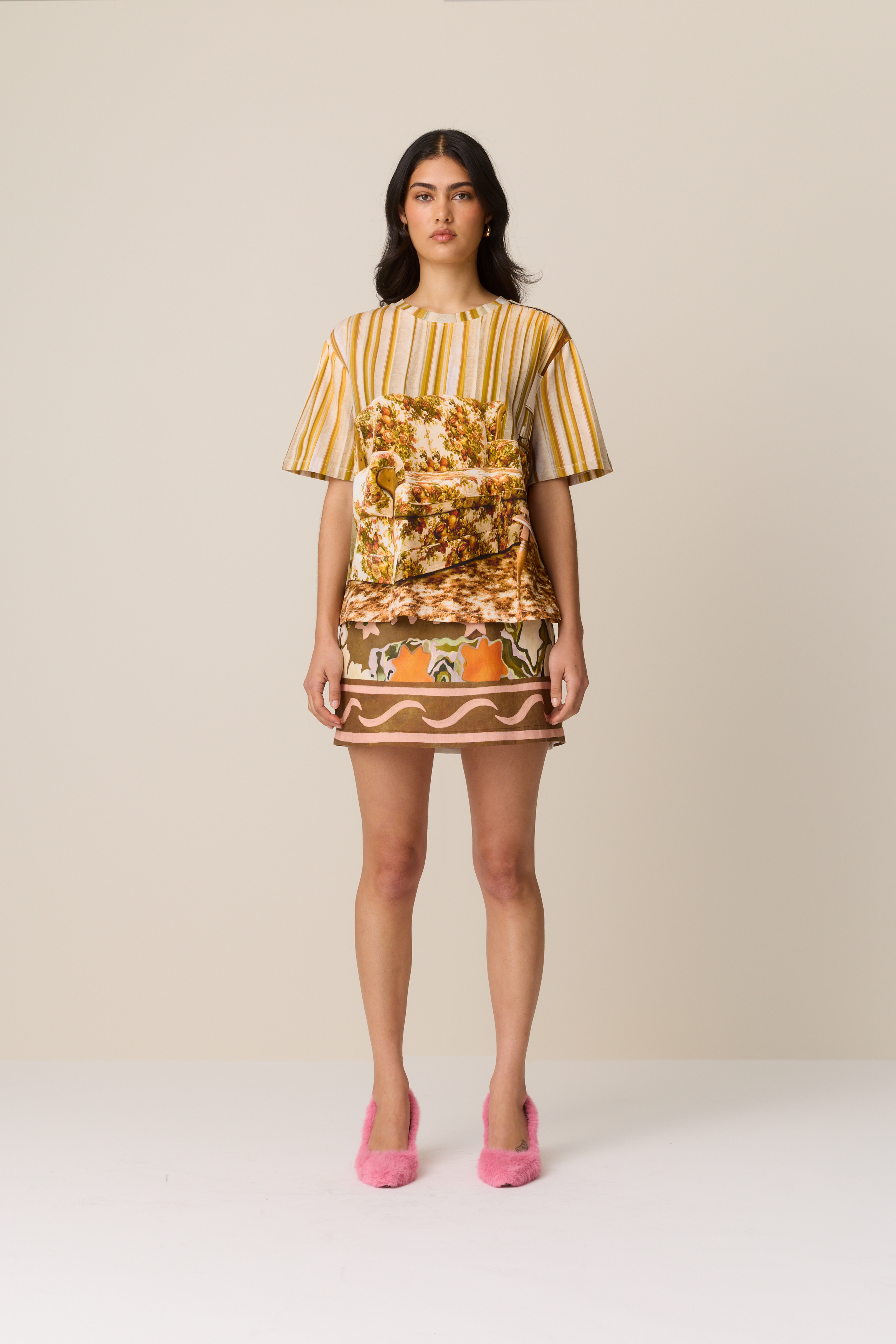 The Rug Margo Mini Skirt is made out of Linen Cotton and lined with viscose. It is placement cut so the design is the same on each garment.