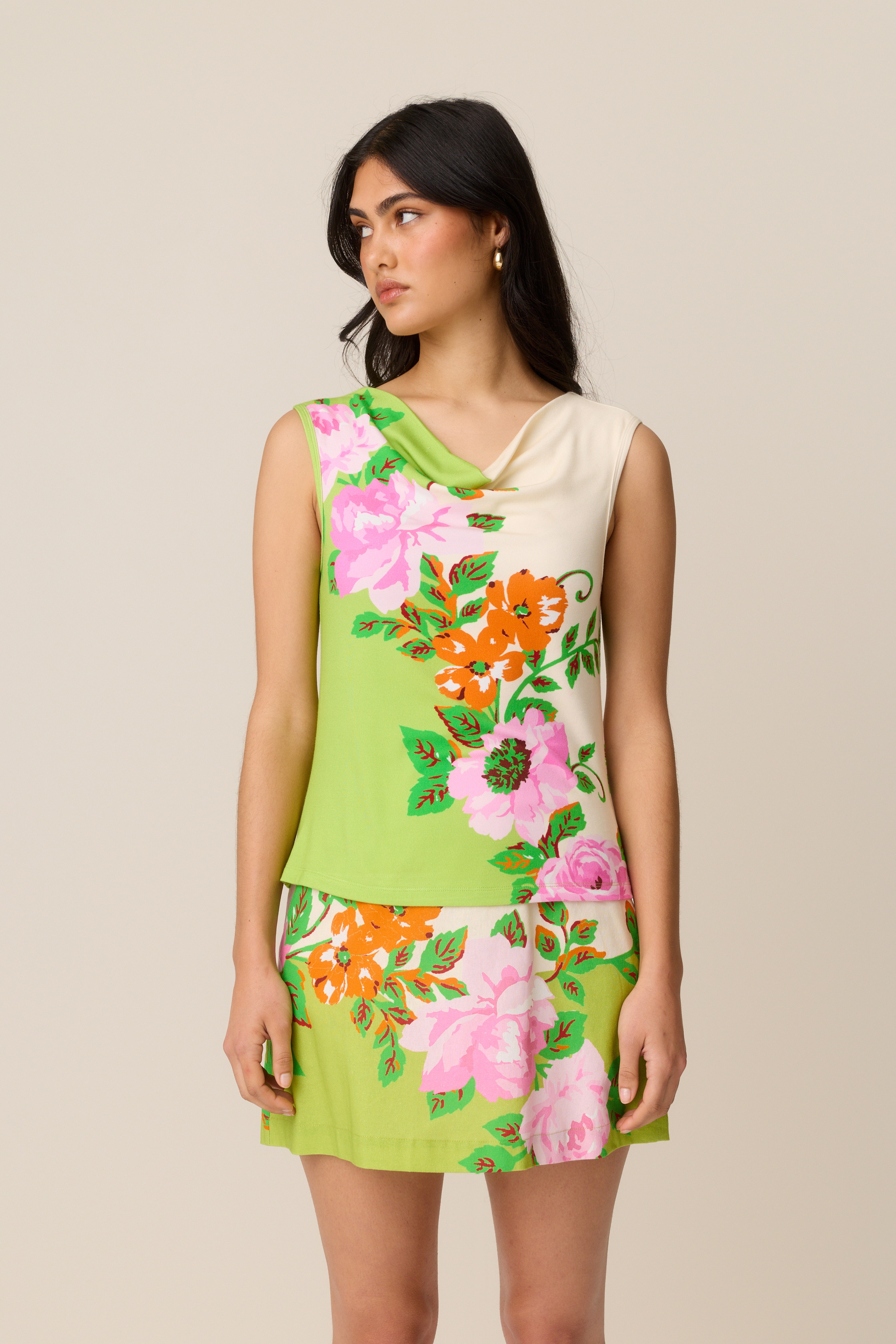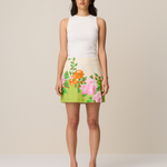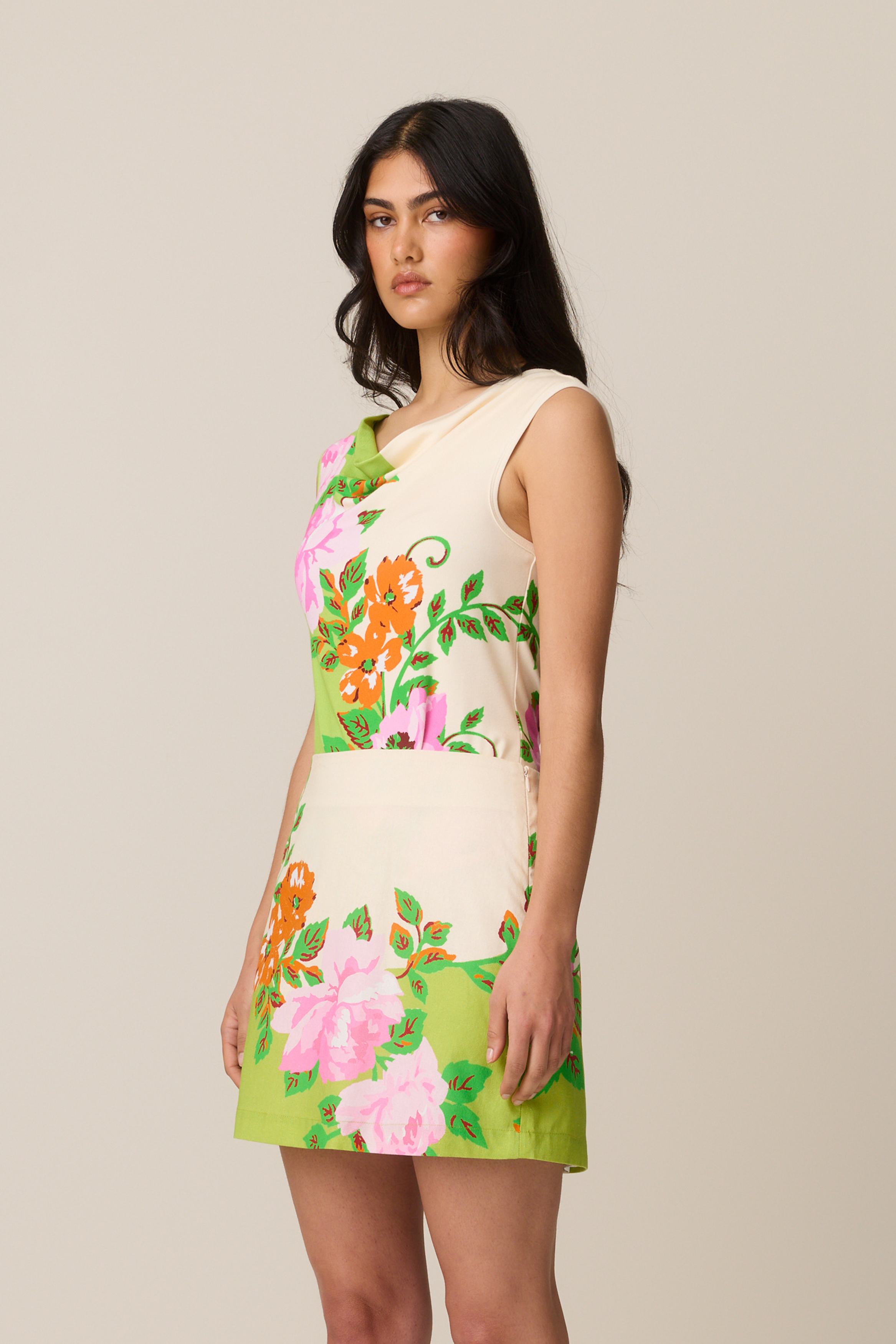 The Tablecloth Margo Mini Skirt is made out of Linen Cotton and lined with viscose. It is placement cut so the design is the same on each garment.