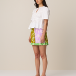 The Panel Short is a boxy, short cut featuring different colour ways, patch worked of our Wallpaper print.