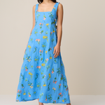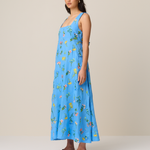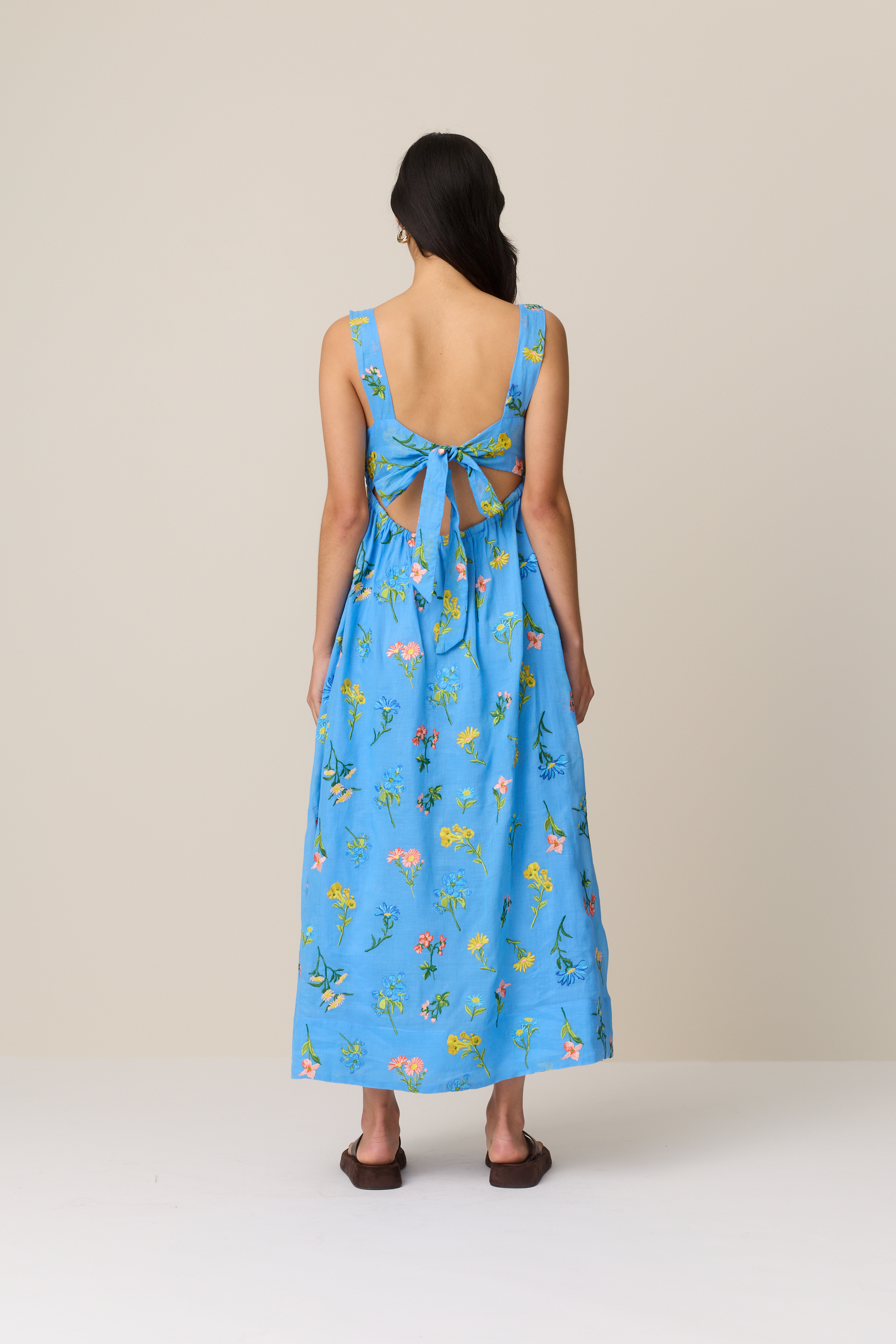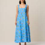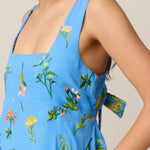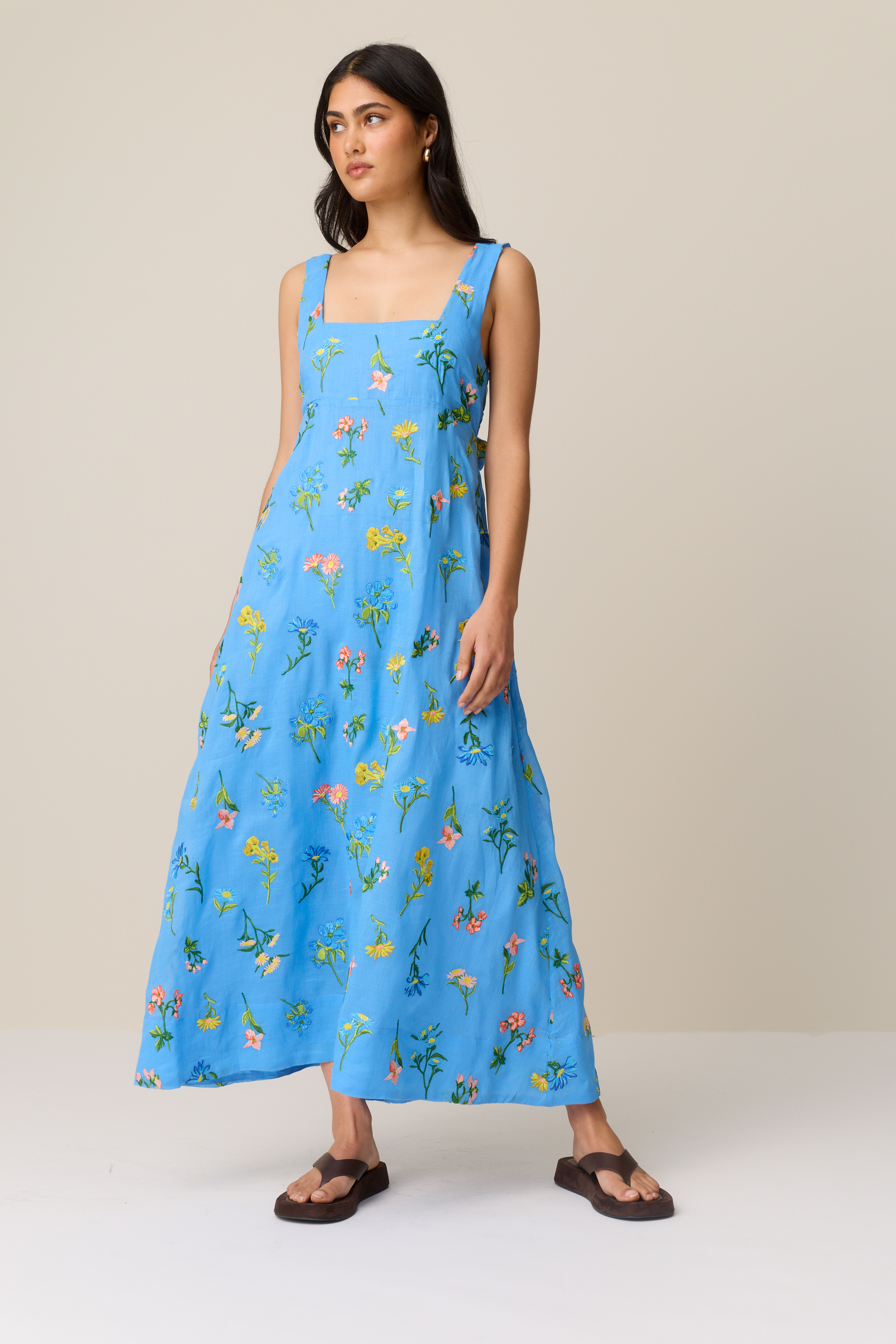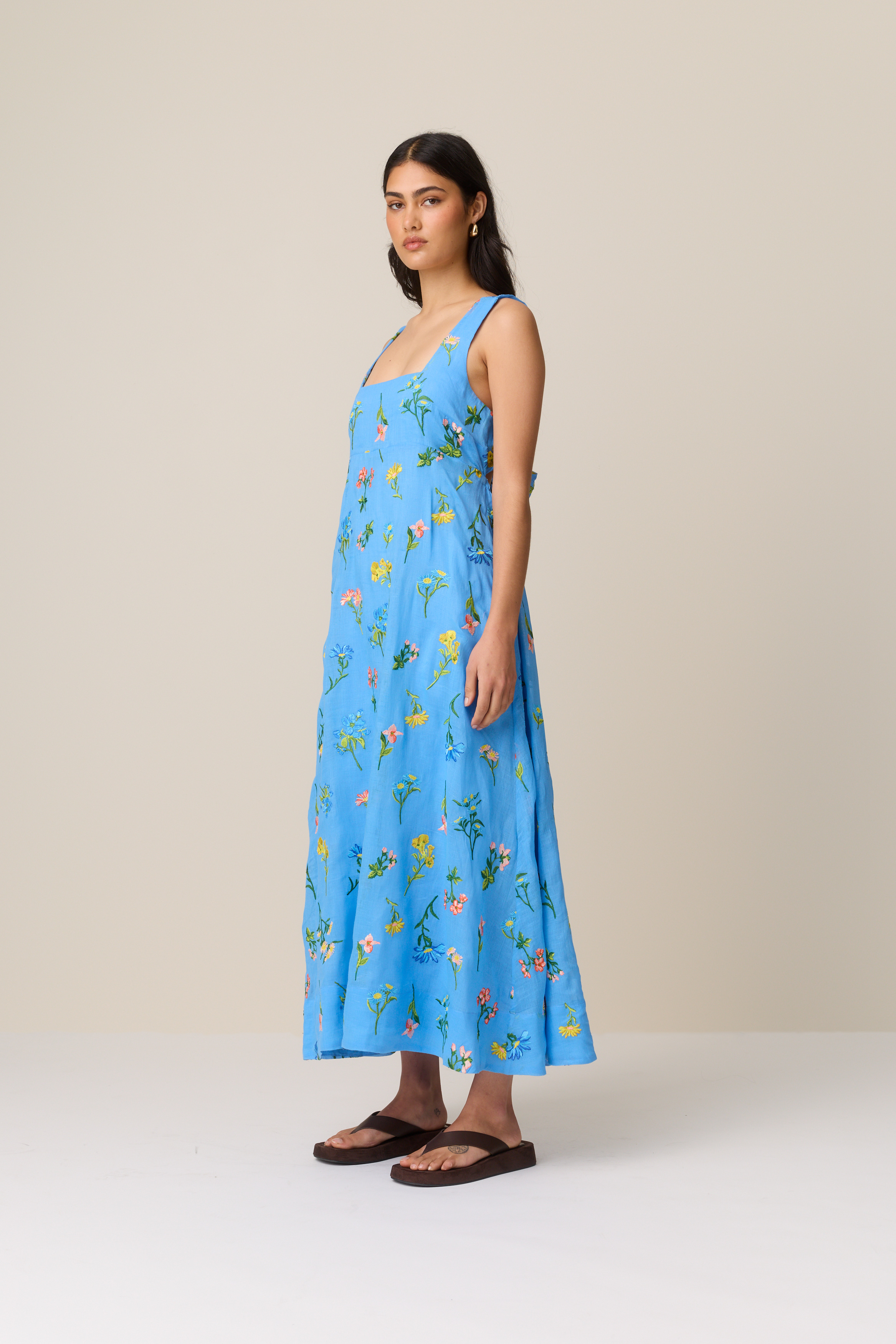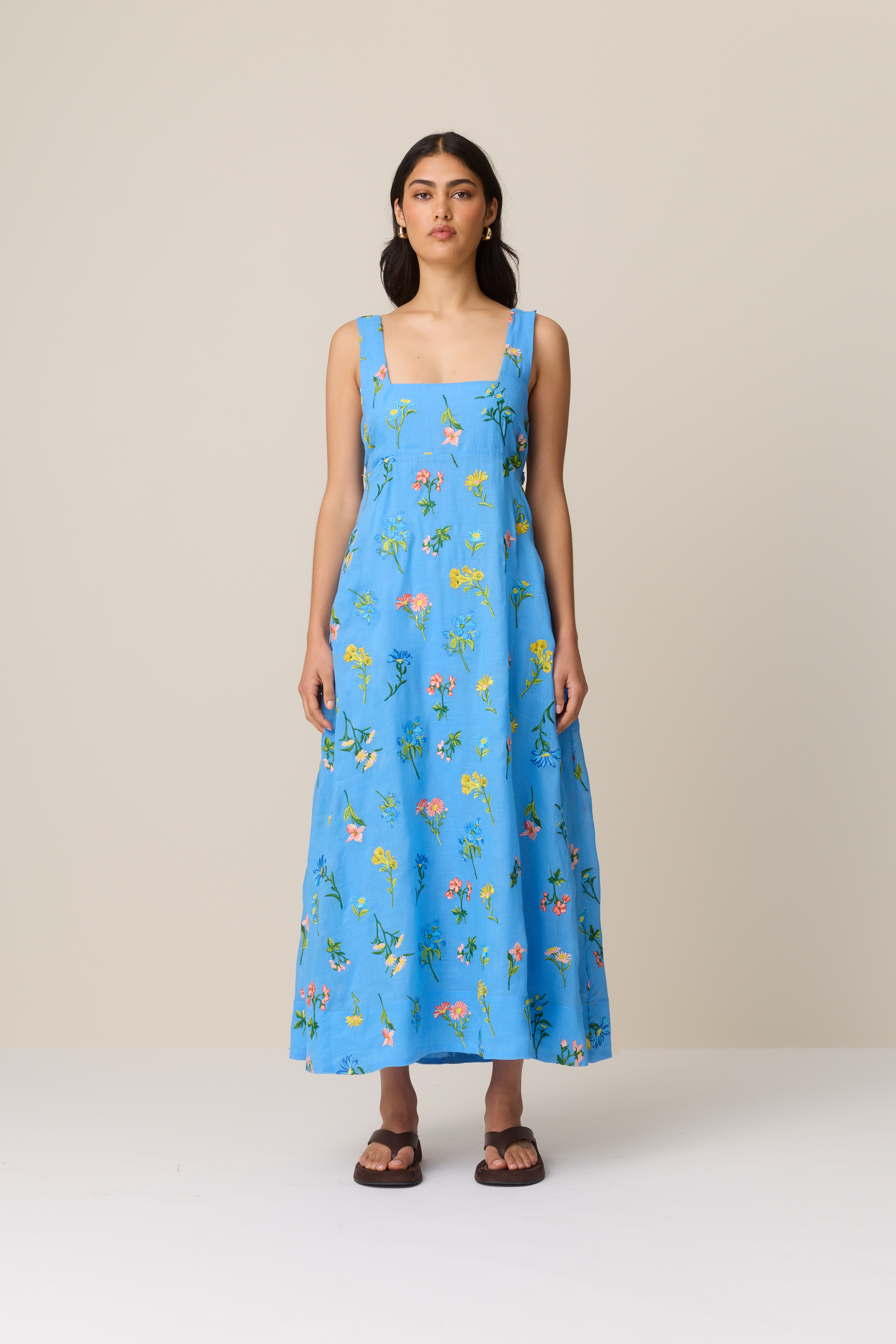 PARLOUR DRESS - BLOSSOM EMBROIDERY CERULEAN