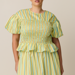 The Fable Blouse is made out our 100% Cotton that has a slight, sateen finish printed in our Sunroom Stripe.