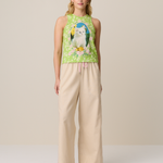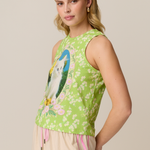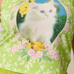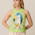 This Jersey Tank is placement printed with our Meow design on the front and features our Wallpaper print on the back.