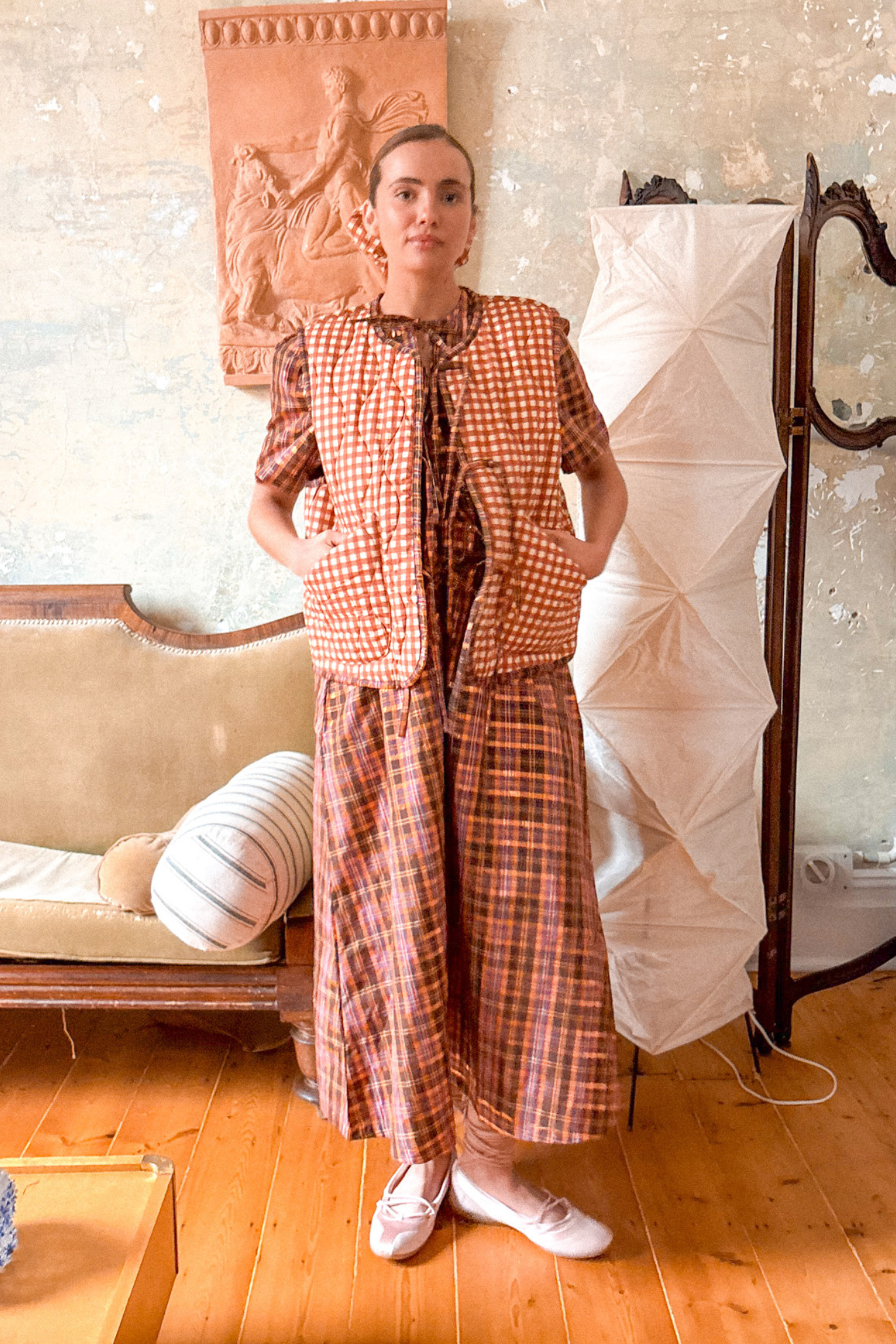 REVERSIBLE QUILTED VEST - HAYBELL GINGHAM / PICKET FENCE PLAID