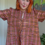 Love this cut and style! This fabric is slightly stiffer than the green plaid, but the metallic thread and warm colours are so beautiful for winter and fall! But also just a perfect year round dress!