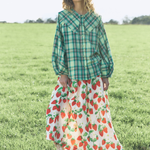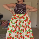 The skirt features our Strawberry print which is printed on a 100% Linen fabrication.