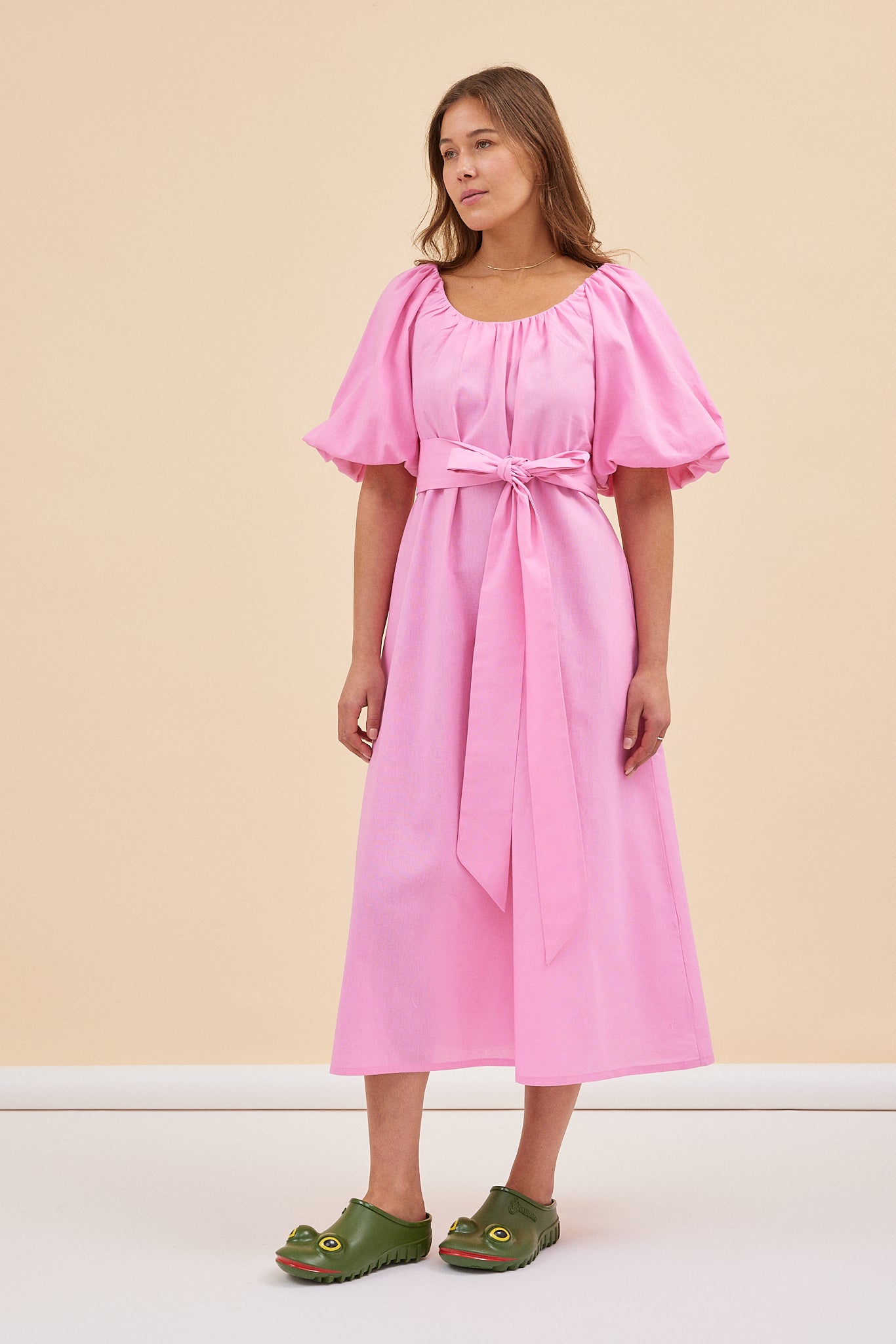 The Petrina dress is intended to fit neat through the bodice and swing through the waist, hips and legs of the skirt. It has plenty of ease of fit through the body and skirt and comes with a thick, removable waist tie if you want to add some shape. Most importantly - it has pockets!