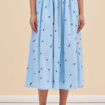 The Garden Gia Skirt is an a-line shaped, gathered, midi skirt.