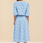 Absolutely love this skirt! It looks amazing with the matching blouse for when I am wanting to look fancy, but I also love being able to pair it with a simple t-shirt on casual days too. The fabric is soft and beautiful! I am not normally a blue person, but this shade is so flattering on all skin types perfect for spring/summer days!