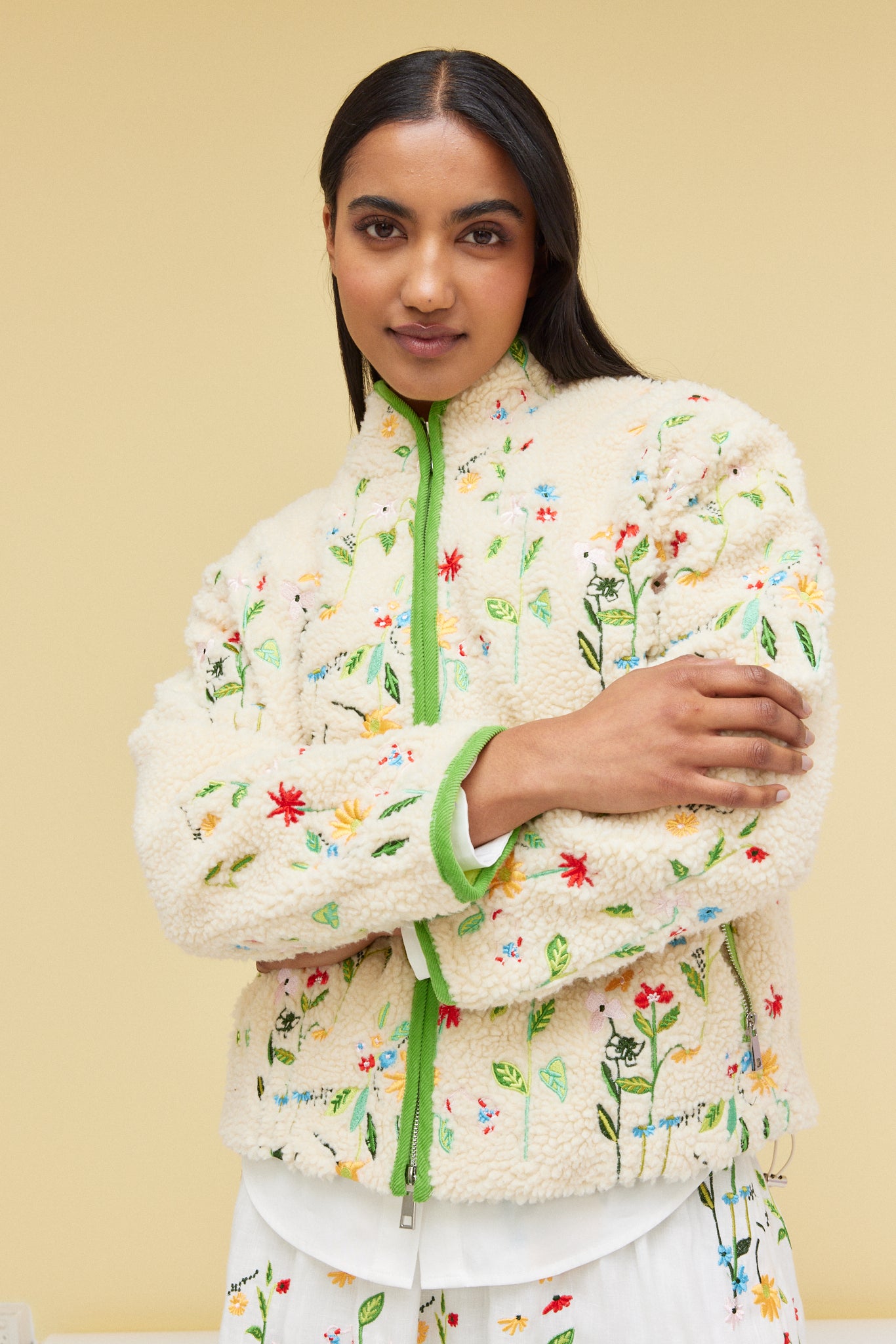 EMBROIDERED FLEECE JACKET - GARDEN