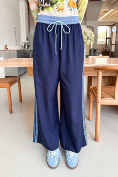 Finished with light blue cord detailing along the neckline, cuffs, and zip for a subtle contrast.