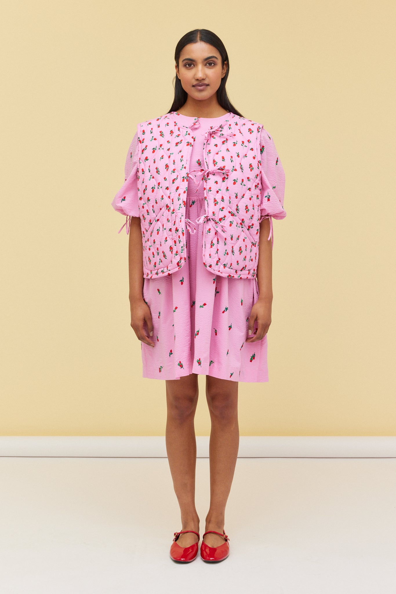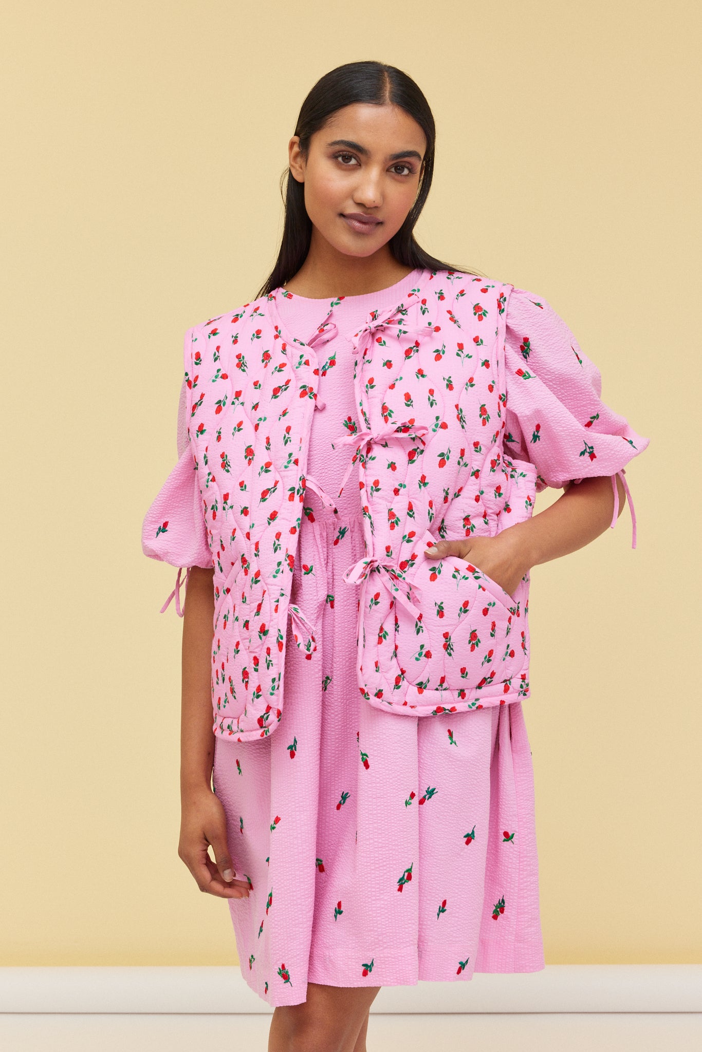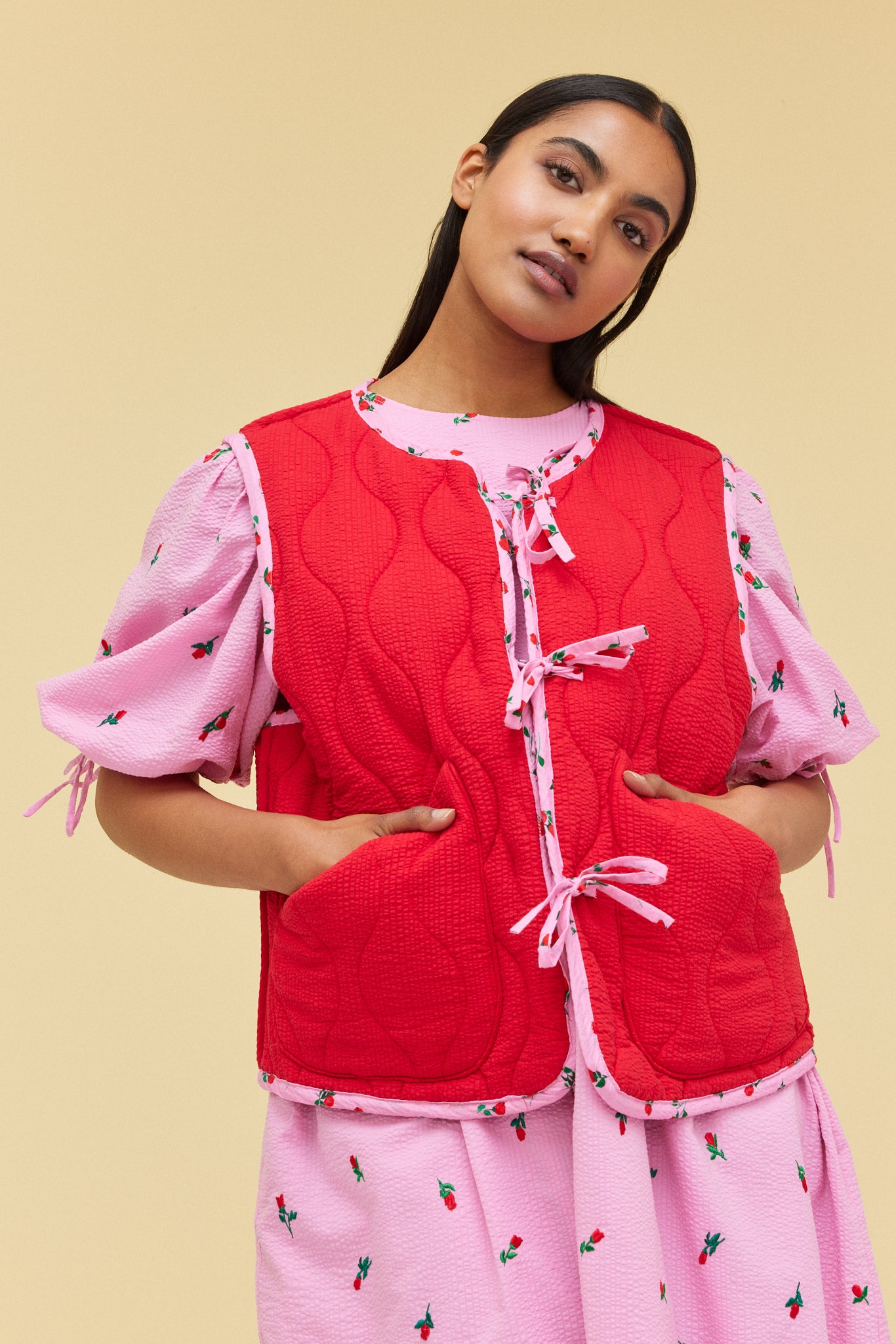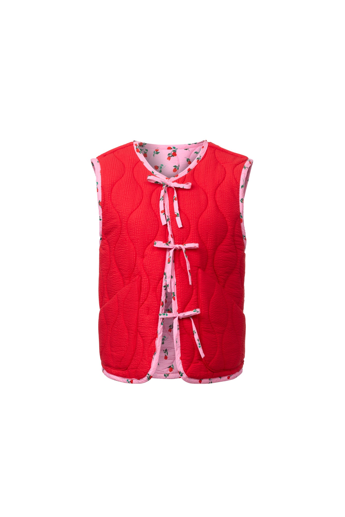 BOW-TIE REVERSIBLE QUILTED VEST - ROSES